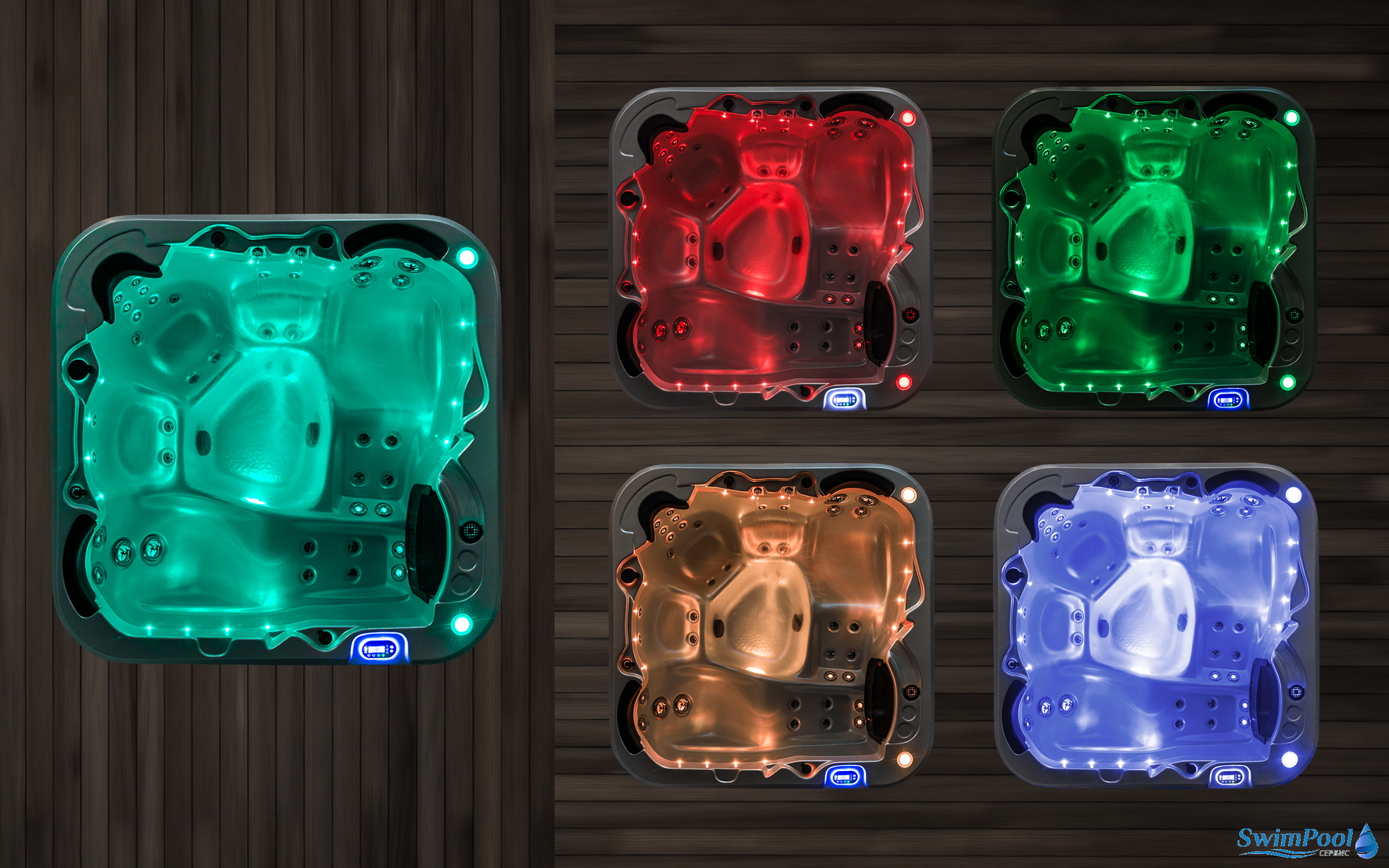 З нашими підводними потужними LED-світильниками ви можете із задоволенням користуватися спа в темряві і не загубитися в ночі. Налаштуйте яскравість і колір світильників залежно від вашого настрою.